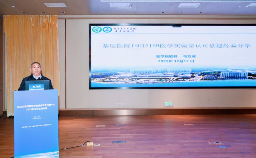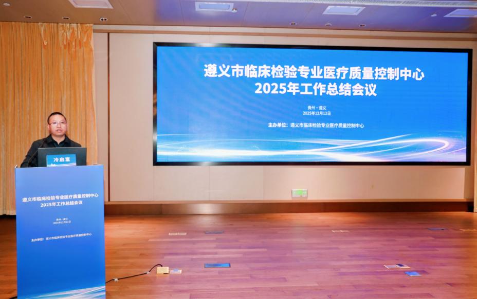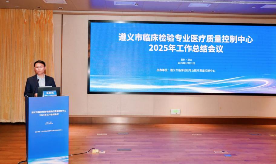 12月12日,遵義市臨床檢驗專業醫療質量控制中心召開2025年度工作總結會議。會議由遵義市臨床檢驗專業醫療質量控制中心(以下簡稱“市檢驗質控中心”)主辦、我院承辦,全市各級醫療機構檢驗科負責人及業務骨干參會,共商基層檢驗質量與能力提升。遵義市衛生健康局黨委委員、副局長冷啟富,市檢驗質控中心主任委員、我院黨委委員、副院長吳凱峰出席會議。會議由市檢驗質控中心副主任委員、我院檢驗科主任查何主持。