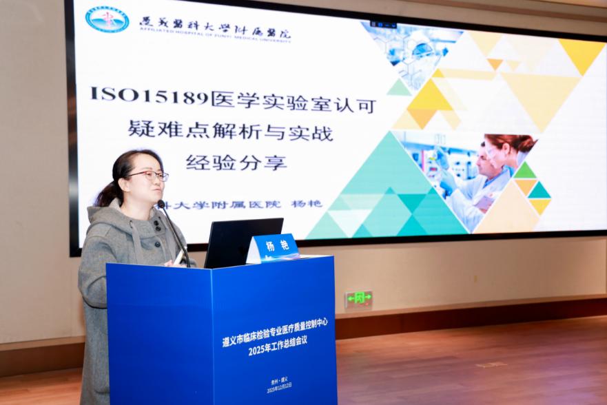 會議圍繞“質量提升”和“實踐賦能”兩大主題開展專題交流。遵義醫科大學附屬醫院檢驗科副主任楊艷作題為《ISO15189醫學實驗室認可疑難點解析與實戰經驗分享》的報告,結合實際評審經驗,對認可過程中的關鍵問題與解決路徑進行了系統講解。銅仁市思南縣人民醫院主任毛萬成以《基層醫院ISO15189醫學實驗室認可創建分享》 為題,分享了推進實驗室規范化建設的實踐探索,為全市基層醫療機構提供了有益借鑒。
